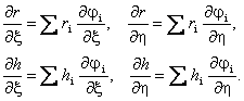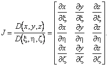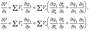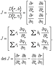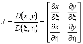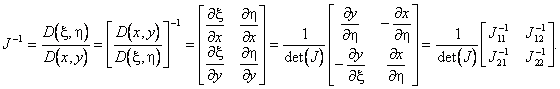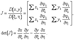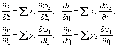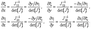 Derivatele partiale in raport cu coordonatele spatiului real se calculeaza din derivatele partiale in raport cu coordonatele din spatiul de referinta cu ajutorul matricei de transformare