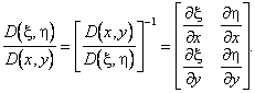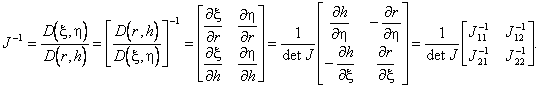 Pentru calculul derivatelor spatiale in raport cu coordonatele din spatiul real folosim formula de derivare a unei functii compuse si avem nevoie de inversa matricii de transformare