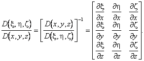 De aici rezulta expresiile derivatelor coordonatelor din spatiul de referinta in raport cu coordonatele spatiului real