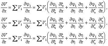 Pentru calculul derivatelor spatiale in raport cu coordonatele din spatiul real se foloseste formula de derivare a unei functii compuse si este nevoie de inversa matricii de transformare