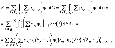 Calculul integralei de mai sus pentru elementele izoparametrice cu muchii drepte s-ar putea efectua in forma analitica, determinand primitiva, avand la dispozitie forma analitica a elementelor matricii de transformare din (3.53), dar pentru o tratare unitara a tuturor elementelor izoparametrice se prefera folosirea formulelor de cuadratura de tip Gauss. Calculul integralelor duble se reduce la o suma dubla