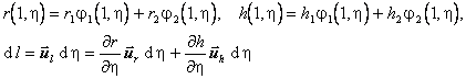 Sistemul de coordonate din spatiul de referinta este de tip plan, caracterizat de coordonatele x si h, astfel ca derivatele coordonatelor din spatiul real in raport cu coordonatele spatiului de referinta au forma