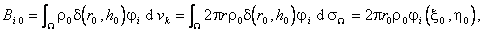 In modelarea axial simetrica mai pot apare si densitati lineice de sarcina, repartizate pe cercuri situate in plane perpendiculare pe axa verticala si cu centrul pe aceasta axa. In sectiunea radiala acestor cercuri le corespund puncte, care pot sau nu sa coincida cu nodurile retelei de discretizare. Corespunzator acestor distributii lineice, mai apare un termen in membrul drept. Acest termen se obtine din (3.58), introducand o distributie de sarcina de tip Dirac, r d (r0,h0), unde indicele 0 precizeaza punctul din spatiul real, r este valoarea densitatii lineice de sarcina, iar r0 si h0 reprezinta coordonatele punctului in acelasi spatiu real. Transformarile succesive ale acestui termen sunt urmatoarele