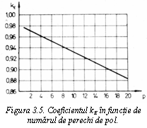 Pentru valorile obisnuite ale lui Xs si cos j, in functie de puterea si turatia motoarelor, se obtin, cu relatia (3.5), valorile coeficientului kE reprezentate in figura 3.5.