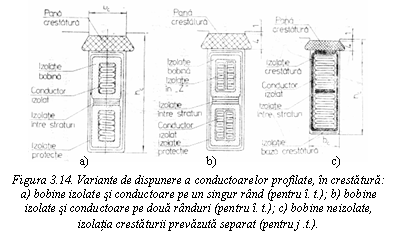 Pentru infasurarile de joasa tensiune, realizate din conductor profilat neizolat, izolatia crestaturii este prevazuta separat (figura 3.14.c).