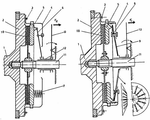 Partea de comanda este reprezentata prin pârghia 13 si prin mansonul de decupare 12.