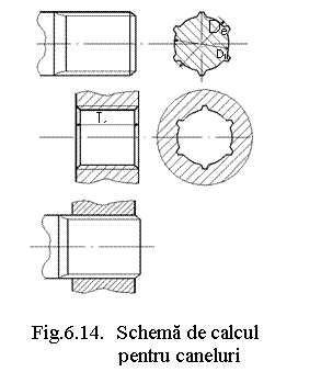 Calculul îmbinarii dintre arbore si butuc se face pentru strivire pe flancurile canelurilor cu relatia:
