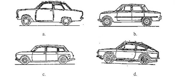 Fig.6.6. Caroserii inchise: a coach; b sedan; c limuzina; d cupe; e cupe sport.