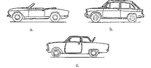 Fig.6.9. caroserii speciale de autoturisme: a microturism; b combi , c curse
