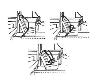 Fig.6.10. Reprezentari al diferitelor tipuri de centuri de siguranta precum si modul de prindere a acestora de caroserie.