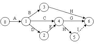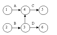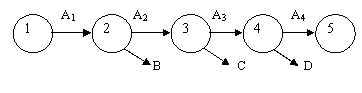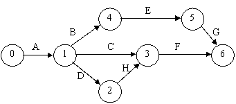 Fiecarei sageti ii este afectat un numar de unitati de timp care reprezinta durata minima ce trebuie sa existe intre inceputurile a doua activitati legate. Astfel, in figura 11, a activitatea B, nu poate incepe decit dupa opt unitati de timp de la inceputul activitatii A, iar activitatea C, dupa noua unitati de timp din acelasi moment.