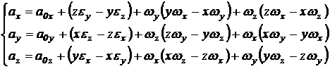 y, z ale acestui vector, pe axele sistemului de referinta mobil