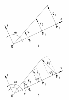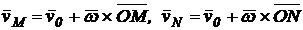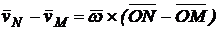 Se considera doua puncte M si N apartinand planului mobil Oxy (fig.15). Pentru a stabili o relatie intre vitezele celor doua puncte se aplica relatia (14) pentru exprimarea vitezelor acestora: