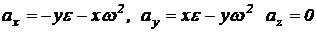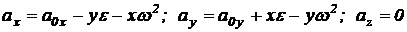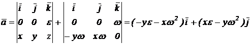 Utilizand relatia Euler pentru acceleratii (22) si tinand seama de particularitatile acestei miscari, date de relatiile (79) si (81) obtinem: