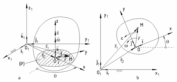 Miscarea rigidului este determinata cand se cunosc expresiile generale, ca functii de timp, pentru vectorul de pozitie, viteza si acceleratia unui punct oarecare M al rigidului, in raport cu un punct O1, presupus fix.