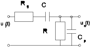 Un circuit de diferen_iere real prezint_, pe lâng_ elementele RC ale circuitului _i o serie de elemente parazite, cum ar fi impedan_a de ie_ire a generatorului de semnal, în general ohmic_, numit_ aici rezisten_a de ie_ire a generatorului de semnal Rg, precum _i capacit__ile distribuite ale sondei de m_surare _i a capacit__ii de intrare a instrumentului de m_sur_ (osciloscopul), aici însumate _i notate Cp. Schema echivalent_ a circuitului de diferen_iere real se prezint_ în figura 1.4. R_spunsul circuitului de diferen_iere real la aplicarea unui semnal treapt_ este ilustrat în figura 1.5, care consider_ diferitele cazuri pentru Rg _i Cp. Se observ_ c_ efectul rezisten_ei de ie_ire Rg este r_sfrânt asupra amplitudinii _i fronturilor semnalului de la ie_ire, pe când capacit__ile parazite Cp influen_eaz_ doar amplitudinea semnalului de ie_ire.