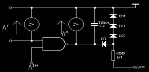 Tranzistoarele Q3 _i Q4, constituite într-un etaj de ie_ire în contratimp, permit conectarea unei importante sarcini capacitive, far_ o înr_ut__ire accentuat_ a timpului de comutare.