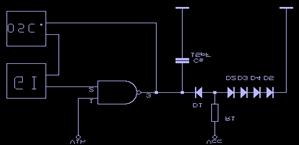Circuitul format din R1, D1-D4, conectat la ie_irea por_ii simuleaz_ o impedan__ echivalent_ cu 10 sarcini TTL. Diodele sunt de tipul 1N4148 iar C1 include capacit__ile de ie_ire a sondelor _i ale sistemului de conectare.