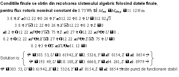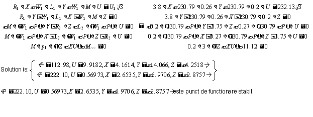 Deoarece suntem in regim stationar,derivatele se anuleaza si rezulta urmatorul sistem algebric :