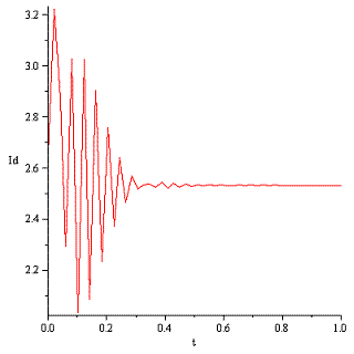 Am introdus datele si sistemul de mai sus in programul MAPLE 11.01 pentru a vizualiza tranzitia intre punctul initial si cel final.