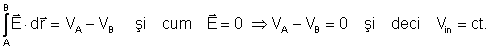 Tot din relatia (3.1) se poate arata ca in tot volumul conductorului, potentialul este constant. Intr-adevar, considerand doua puncte A si B oarecare in interiorul conductorului putem scrie: