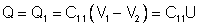 sarcina unui condensator este Q=Q1, sarcina armaturii interne,