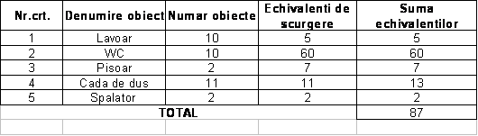 Necesarul de apa potabila pentru consum igienico - sanitar (instalatii interioare de apa si canalizare, cu prepararea locala a apei calde)