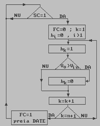 - sfârsitul ciclului de conversie, când este disponibil rezultatul conversiei forma numarului binar stocat în RAS, este marcat prin semnalul logic FC="1".