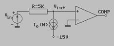 Vizualizati pentru tensiunea VIN aleasa la punctul "1", tensiunea VIN+ la intrarea în comparator (punctul marcat Vcomp în schema generala a machetei de laborator, din figura 2). Desenati si explicati imaginea vizualizata, comparativ cu cea obtinuta teoretic, la punctul "1".