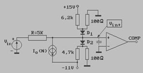 Deasemenea se reduce constanta de timp de încarcare/descarcare a capacitatii parazite de la nodul [UIN+] deoarece diodele sunt prepolarizate (rezistenta echivalenta a nodului [UIN+] este în acest fel mica, imediat ce UIN+ este diferit de zero).