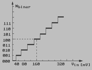 Se realizeaza astfel "baleierea" caracteristicii de conversie, în jurul tensiunii continue VIN fixate. CA/N-ul produce coduri succesive, corespunzatoare tensiunii instantanee de la intrare. Pentru ca procesul de conversie sa fie corect, trebuie sa fie îndeplinit regimul cvasi-stationar al tensiunii de intrare VIN. Aceasta conditie impune ca tensiunea liniar variabila, de la intrarea CA/N-ului, sa îndeplineasca urmatoarea conditie: