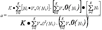 Pe baza acestor determinari, se reprezinta punctele caracteristicii de conversie reale, fata de dreapta celei mai bune aproximatii liniare a acesteia. Parametrii acestei drepte se determina cu urmatoarele formule: