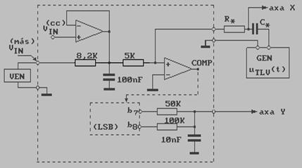 In functie de amplitudinea vârf-vârf a tensiunii UTLV(t), poate fi "baleiata" o zona mai mare sau mai mica, din caracteristica de transfer a CA/N-ului studiat.