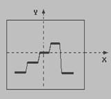 Tranzitia pe ecran între doua paliere alaturate nu este verticala, ci o curba continua, distanta verticala fata de palierul treptei fiind proportionala cu probabilitatea de aparitie a codului treptei vecine ( acest efect apare datorita medierii, mai multor masuratori rapide, pe condensatorul de 10nF, de la iesirea aplicata pe "axa X" a osciloscopului, notata VOF în figura 2
