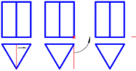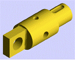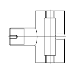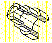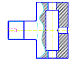 Considerând desenul "E1.dwg", reprezentând un element dintr-o instalatie pneumatica de comanda, modificati corespunzator desenul, astfel încât proiectia desenata sa redea corect obiectul din punctul de vedere al utilizarii tipurilor de linii. Realizati de asemenea sectiunea partiala în tronsonul vertical, astfel încât prelucrarile interioare sa devina vizibile. Piesa este prevazuta cu un filet exterior cu iesire pe tronsonul orizontal si cu gauri filetate interioare strapunse la capetele tronsonului vertical. Tronsonul orizontal are de asemenea o gaura cilindrica înfundata, nevizibila pe proiectia considerata. Aspectul initial si cel final al desenului sunt redate în continuare. |