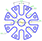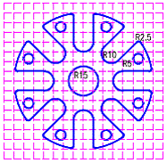Sa se reprezinte în proiectiile ortogonale necesare si sa se coteze cadranul din figura, apoi sa se prezinte pe un format standardizat din seria A la o scara potrivit aleasa ("PL9.dwg"). Dimensiunile se determina de pe reteaua
