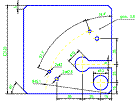 Sa se reprezinte în proiectiile ortogonale necesare si sa se coteze pârghia plana din figura, apoi sa se prezinte pe un format standardizat din seria A la o scara potrivit aleasa ("PL13.dwg"). Dimensiunile se determina de pe reteaua
