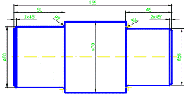 Sa se reprezinte în proiectiile ortogonale necesare si sa se coteze piesa de tip ax descrisa în continuare. Forma geometrica a axului este compusa din trei tronsoane cilindrice în prelungire, având axa longitudinala comuna. Diametrele celor trei tronsoane care compun piesa