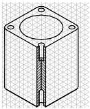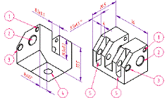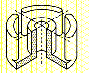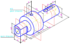 Sa se modeleze spatial carcasa din problema precedenta. Sa se prezinte modelul într-o imagine ortogonala si una spatiala, pe un format standardizat ("AX12.dwg"). |