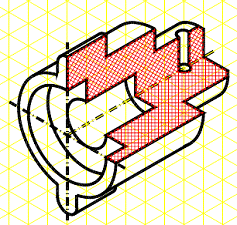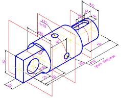 izometrica, al carei pas este de Sa se prezinte desenul pe un format standardizat la o scara adecvata. Observatie: figura prezinta obiectul partial sectionat, pentru a evidentia configuratia interioara. Bucsa este o piesaa de revolutie completa în jurul axei longitudinale. |