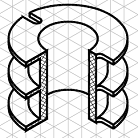 Sa se reprezinte în proiectiile ortogonale necesare si sa se coteze miezul de ferita din figura urmatoare. Dimensiunile se vor determina de pe reprezentarea