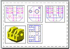 Sa se modeleze spatial obiectul din problema precedenta. Sa se prezinte pe un layout adecvat, din gama celor standardizate de tip A, vederile ortogonale necesare si o vedere spatiala potrivit aleasa ("PRO2_8.dwg"). |