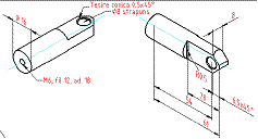 Se considera desenul "FIL_.dwg". Sa se înscrie pe desen urmatoarele informatii: Cota de F8 se tolereaza dimensional cu abaterile +0.03 si -0.015; Pozitia orificiului de F8 (data prin cota de Pentru suprafata cilindrica a orificiului de F8 se