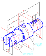 Sa se modeleze spatial axul din problema precedenta si sa se genereze proiectiile ortogonale necesare, alaturi de o prezentare spatiala a modelului, pe un format standardizat din seria A ("AX6.dwg"). |