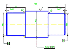 Se considera desenul "AX1.dwg". Sa se înscrie pe desen urmatoarele informatii: Tolerante dimensionale generale în clasa de toleranta mijlocie; Toleranta geometrica la coaxialitate de Rugozitatea data de Ra=6.3 ”m pe toate suprafetele cu exceptia suprafetei laterale a tronsonului central, pentru care parametrul de profil este Ra=3.2 ”m. |