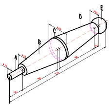 Sa se reprezinte în proiectiile ortogonale necesare si sa se coteze arborele din figura. Sa se prezinte desenul pe un format standardizat din seria A, la o scara potrivit aleasa. |