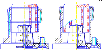 Sa se realizeze desenul de ansamblu al unui buton de pornire/oprire, ale carui componente sunt prezentate în fisierul "ANS_4_ENUNT.dwg" din folder-ul "Desene". În componenta acestuia se includ un subansamblu si alte patru componente. Se va realiza mai întâi desenul de asamblare al subansamblului. Se va apoi realiza ansamblul final, rezultat în urma suprapunerii componentelor, respectând cotele de montaj si regulile de desenare a ansamblurilor ("ANS_4.dwg"). Se vor înscrie pe desen dimensiunile necesare. Pentru realizarea subansamblului si a ansamblului final, ghidati-va dupa modelul din figura urmatoare. Imaginea din stânga prezinta componentele suprapuse, iar imaginea din dreapta este rezultatul asamblarii. Se mentioneaza faptul ca fiecare componenta este reprezentata în pozitia de montaj. |