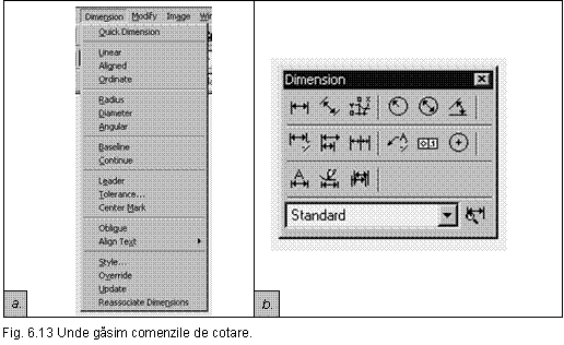 selectând din meniul desfasurabil Dimension (fig. 6.13, a) sau