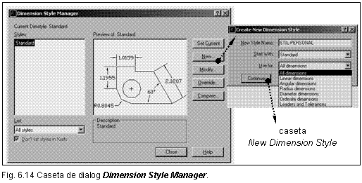 seteaza pentru cota un stil de text definit anterior; butonul din dreapta listei permite crearea unui nou stil cu ajutorul casetei Text Style (fig 6.1,b) |