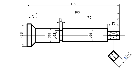 In fig.4.1 este reprezentata, intr-o singura proiectie (vedere), o piesa plina (tip arbore) prelucrata prin aschiere.